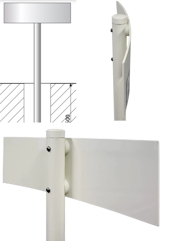 Aluminium ovaal parkeerbord met een elegante uitstraling om uw bezoekers, klanten of personeel aan te geven waar zij mogen parkeren. Het ovale parkeerbord heeft een lengte van 510 mm en wordt zonder bedrukking geleverd. U kunt zelf tekst en/of logo aanbrengen. Het bord zit gemonteerd op een witte aluminium buis met een diameter van 45 mm. De staander heeft een totale lengte van 1190 mm, waarvan 700 mm boven maaiveld. Aluminium ovaal bord, afmeting 510x150x4 mm, polyester poedercoating, wit RAL 9010. Staander aluminium buisprofiel, polyester poedercoating, wit RAL 9010, lengte 1190 mm, waarvan 700 mm boven maaiveld, inclusief los grondanker. Overige afmetingen en borden in RAL kleur gespoten daarvan is de prijs op aanvraag. Inclusief belettering. Opmaakbestand van de belettering graag uploaden of vie wetransfer naar ons versturen.