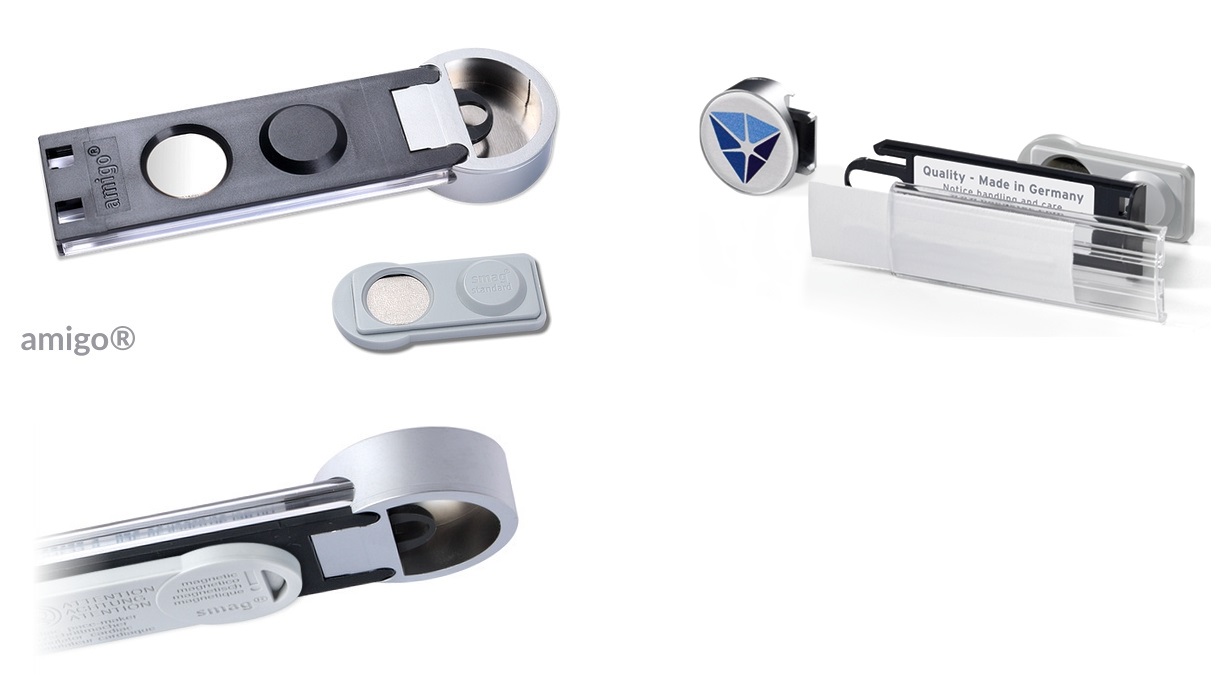 Combi kaarthouder met een elegante vierkant of rond contour bedrukt aluminium met daaraan gekoppeld de vlakke, witte of antraciet design kaarthouder voor een print of kaartje van 60x17 mm. Tekst voor de kaarthouder kan men zelf printen met de gratis spanware, dit geldt niet voor de contourbedrukking van het aluminium. Verkrijgbaar in 1 afmetingen met keuze uit witte of antraciet kaarthouder en keuze bij contourprint op aluminium in de kleuren zilver, chroom of goud. Tegen meerprijs is de kaarthouder ook verkrijgbaar in de kleuren zilver, chroom of goud. Voor sluitingen heeft u de keuze uit normale magneet sluiting, met extra sterke magneetsluiting of met rvs pin sluiting voor bijvoorbeeld mensen met een pacemaker. Voor de contourbedrukking een drukbestand aanleveren; tegen meerprijs kunnen wij die ook voor u opmaken. Verkrijgbaar vanaf 10 stuks.