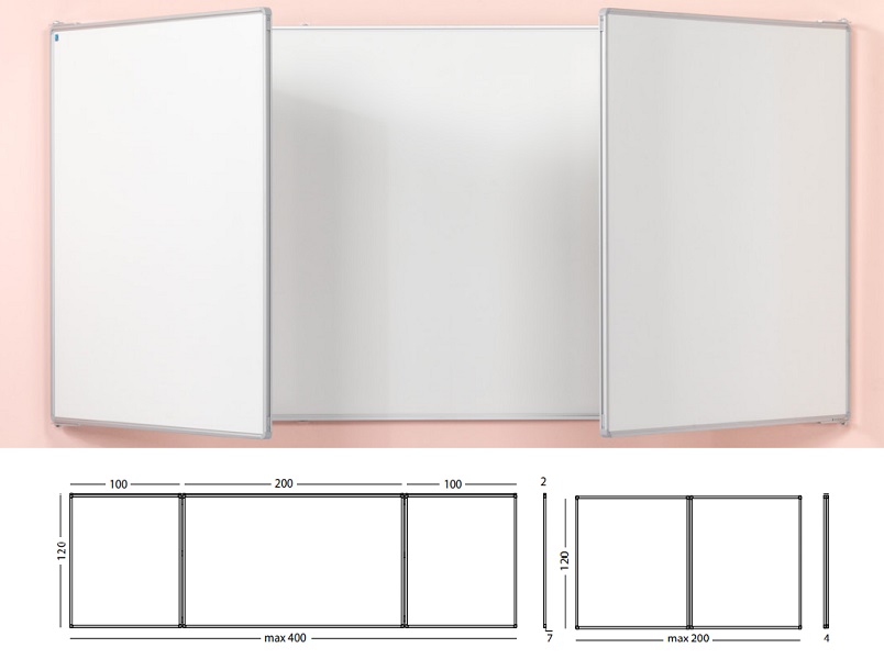 Whitebord met 5 schrijfvlakken van wit emailstaal (800C). Extra vleugels zorgen voor meer schrijfruimte. Geanodiseerd aluminium RC-profiel met grijze kunststof hoekstukken. Inclusief afleggoot. Zie voor meer informatie bijgevoegde PDF.