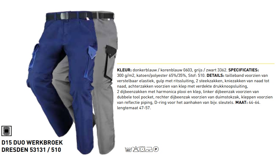 Werkbroek Dresden donkerblauw/korenblauw maat 44-64, lengtemaat 47-57